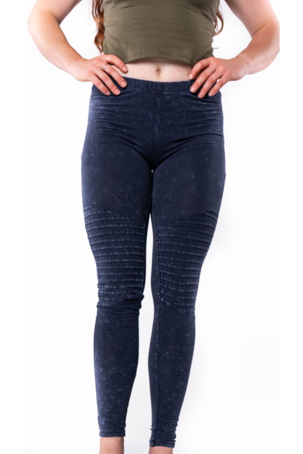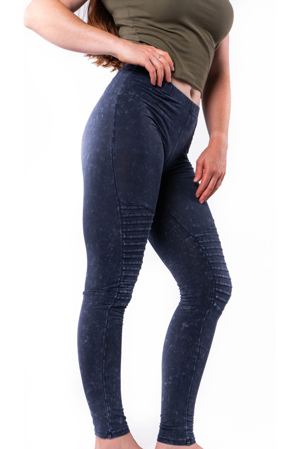 Džegíny s řasením na kolenou